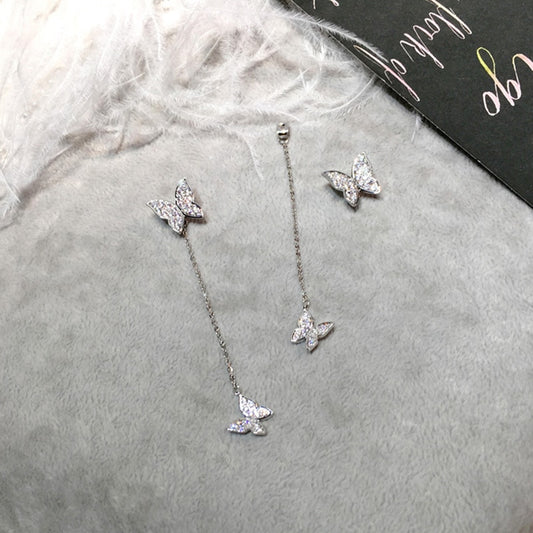 Double Link Silver Butterfly Earrings