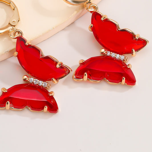 Tracy Red Hanging Gold Butterfly Earrings