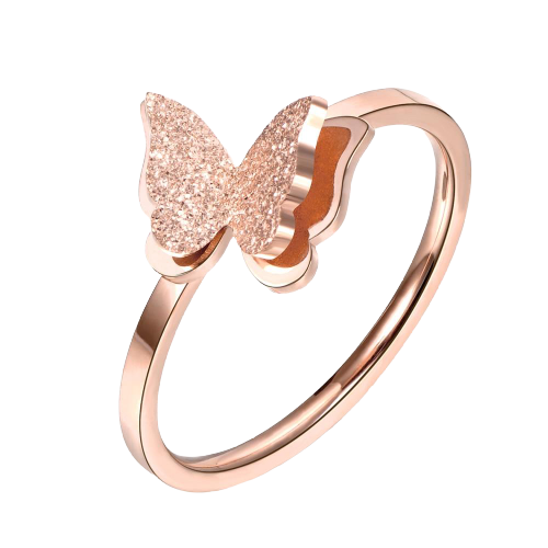 The 3D rose gold butterfly ring stands for connection and energy. It is the proof jewelry can bring people together.