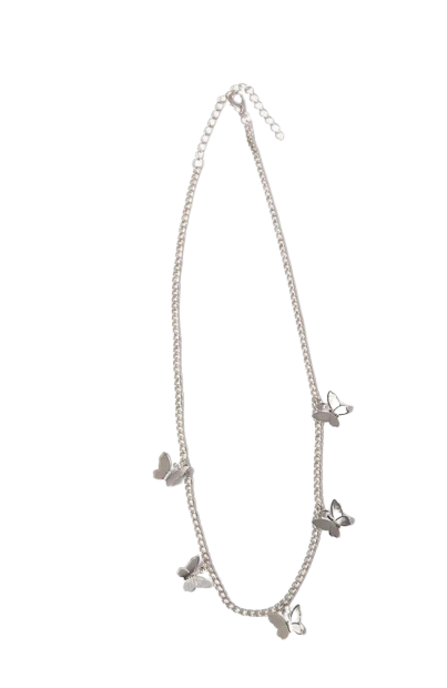 A delicate quintet of monarchs, all connected via an elegant link chain, that forms a striking butterfly necklace.