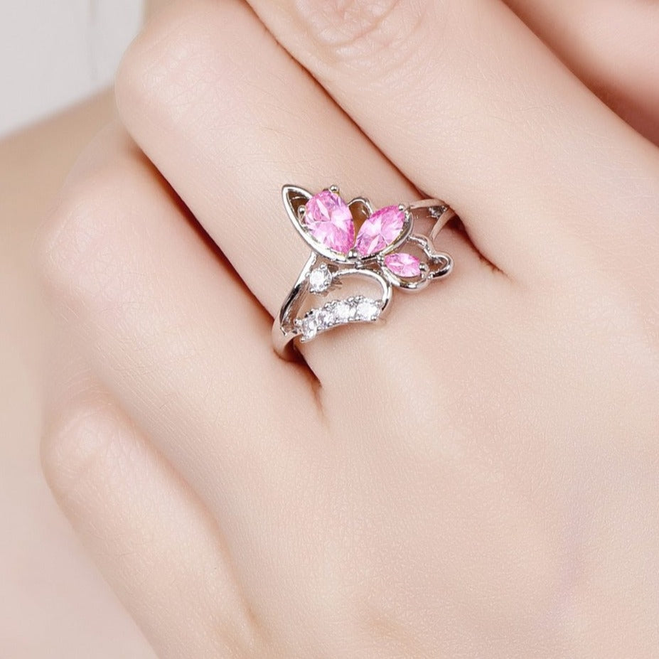 Emmy Pink Diamonds Silver Butterfly Ring