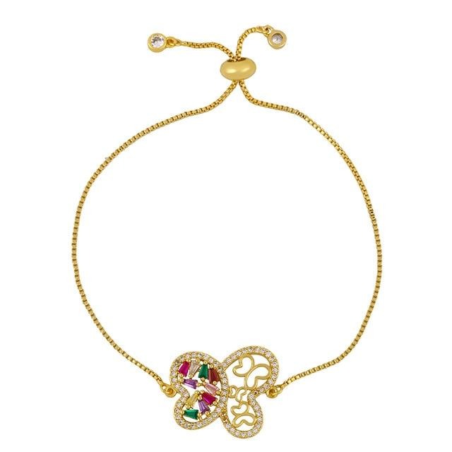 Statement bracelets are everything! This gold butterfly bracelet includes neutral tones and precious colored stones. The perfect balance between a minimalist and eye-catching design.