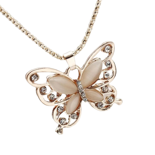 Give your neck something to boast about with this delicate butterfly necklace. A rare and delicate rose gold piece of jewelry.